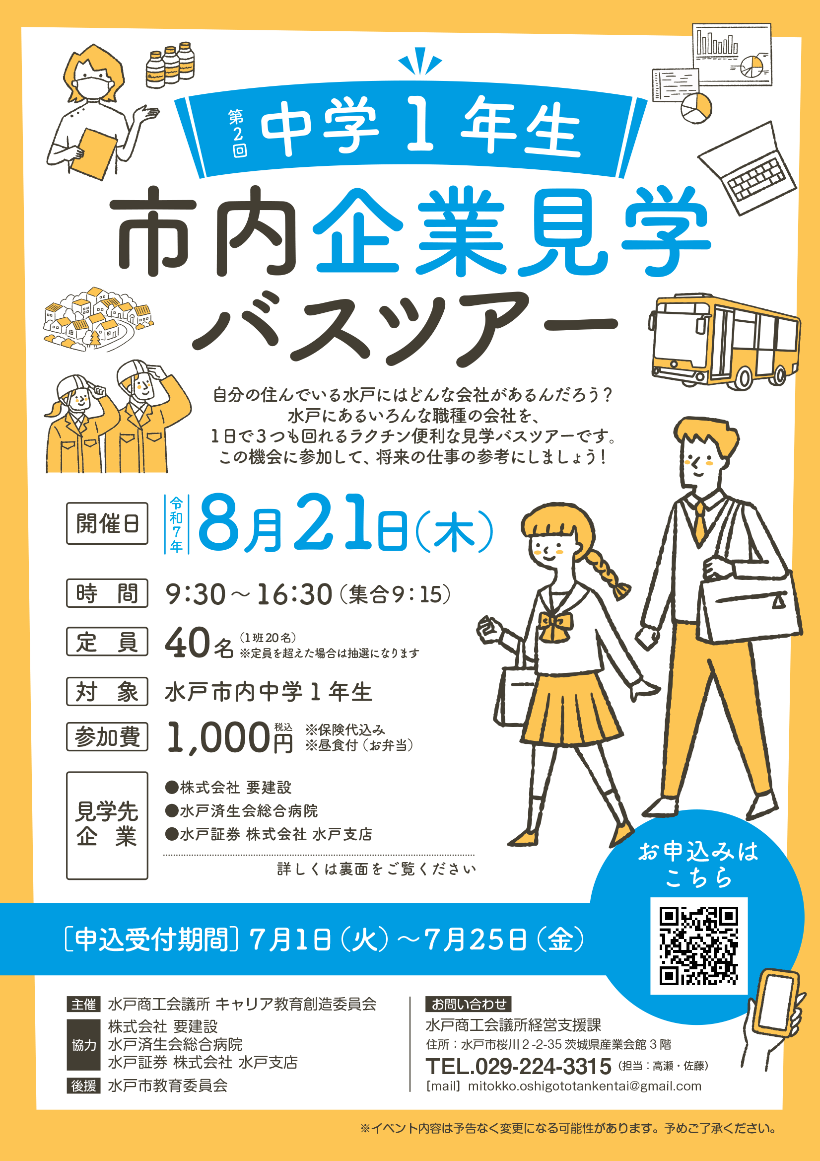 水戸市内の中学1年生を対象とした「中学1年生市内見学バスツアー」を、8月21日に開催し、35人の生徒が参加。生徒は2班に分かれ、市内企業3社を1日で見学した。